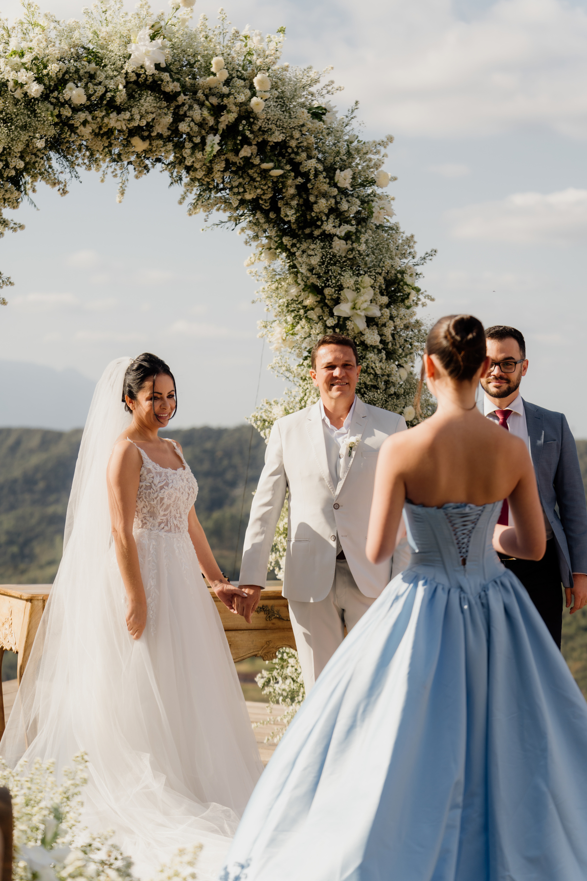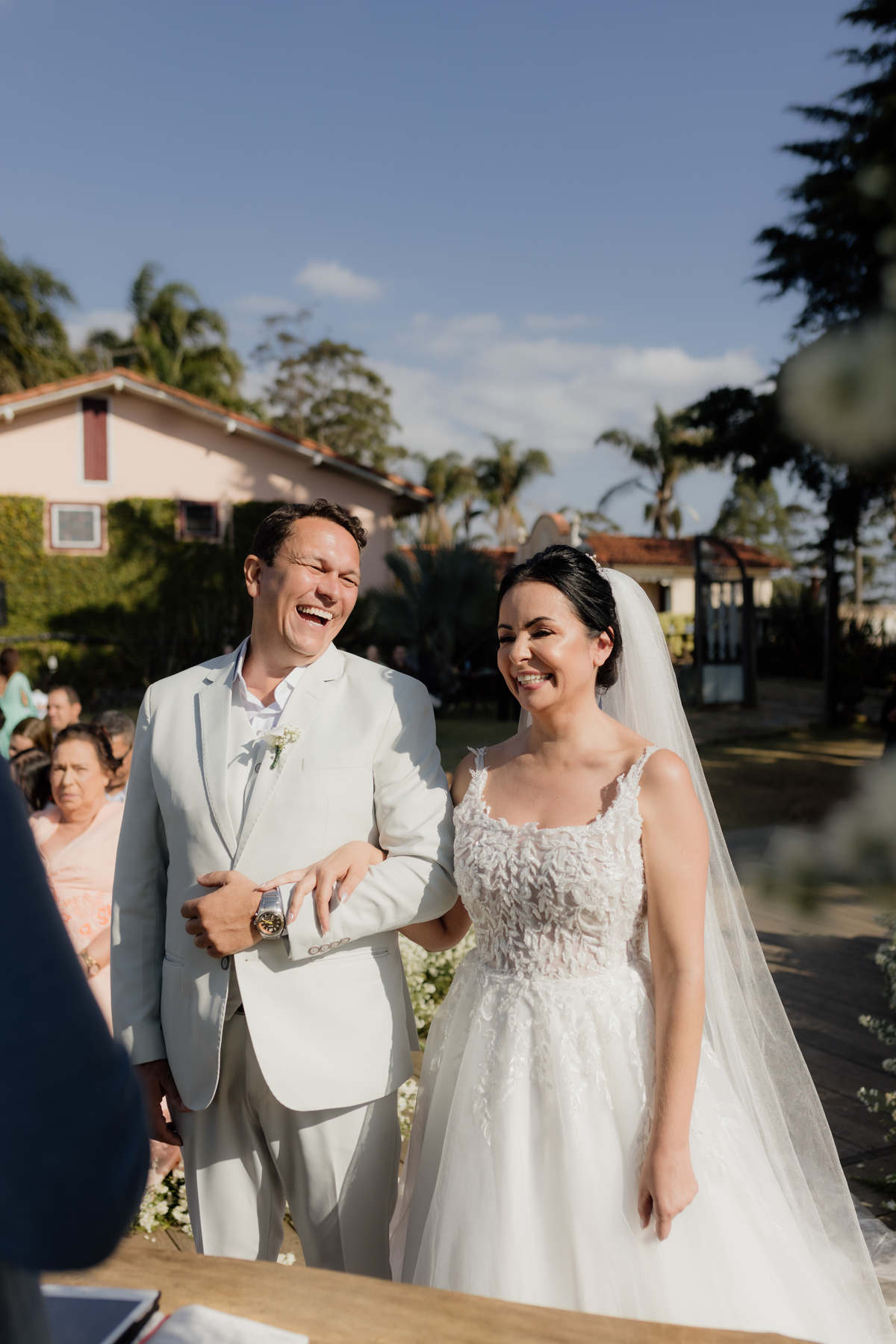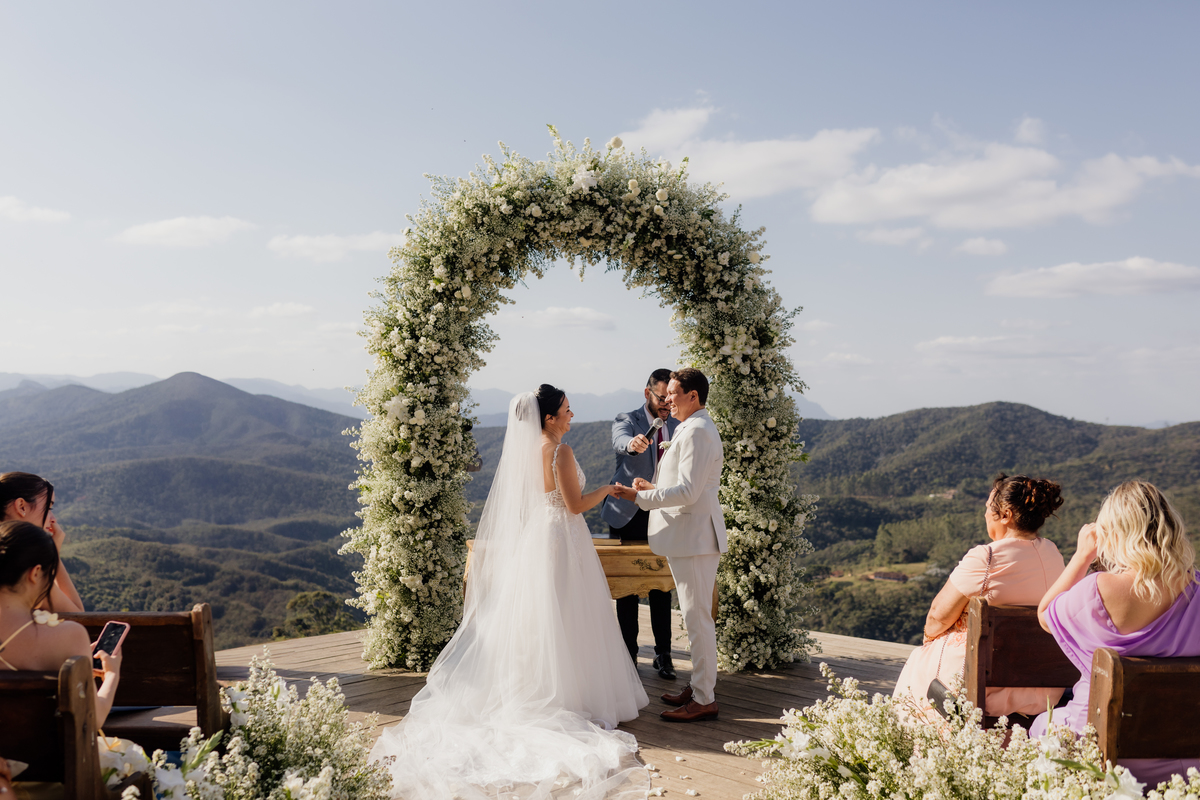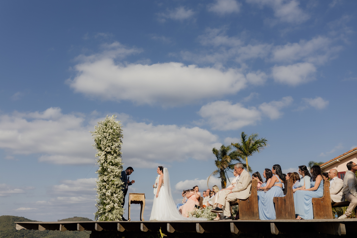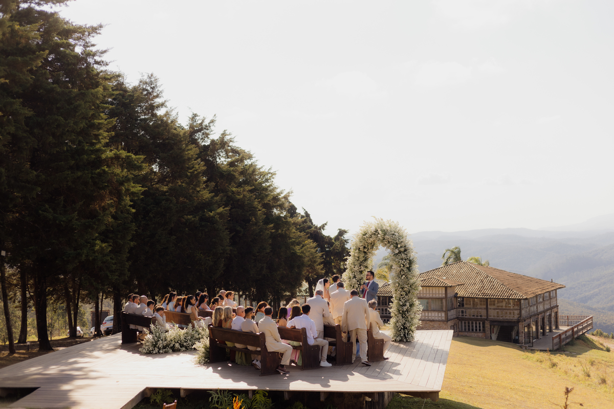 Na Vila Relicário, o dia estava especialmente bonito, com um pôr do sol que preenchia tudo com uma luz suave. Sem excessos, sem pressa, o casamento aconteceu de forma leve, no olhar tranquilo, nas mãos que se encontravam, na certeza silenciosa de quem escolheu estar ali. Mais do que um cenário incrível, foi um dia sobre presença. Sobre dois caminhos que, com calma, decidiram seguir juntos.