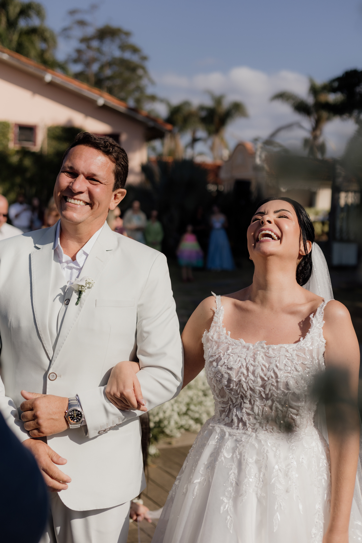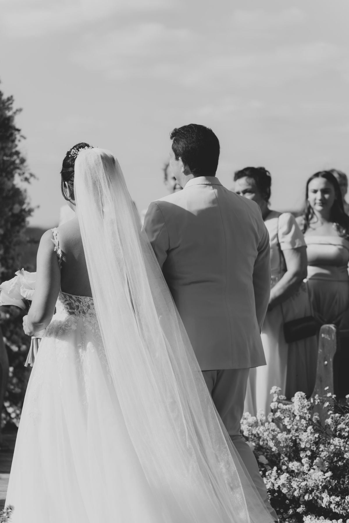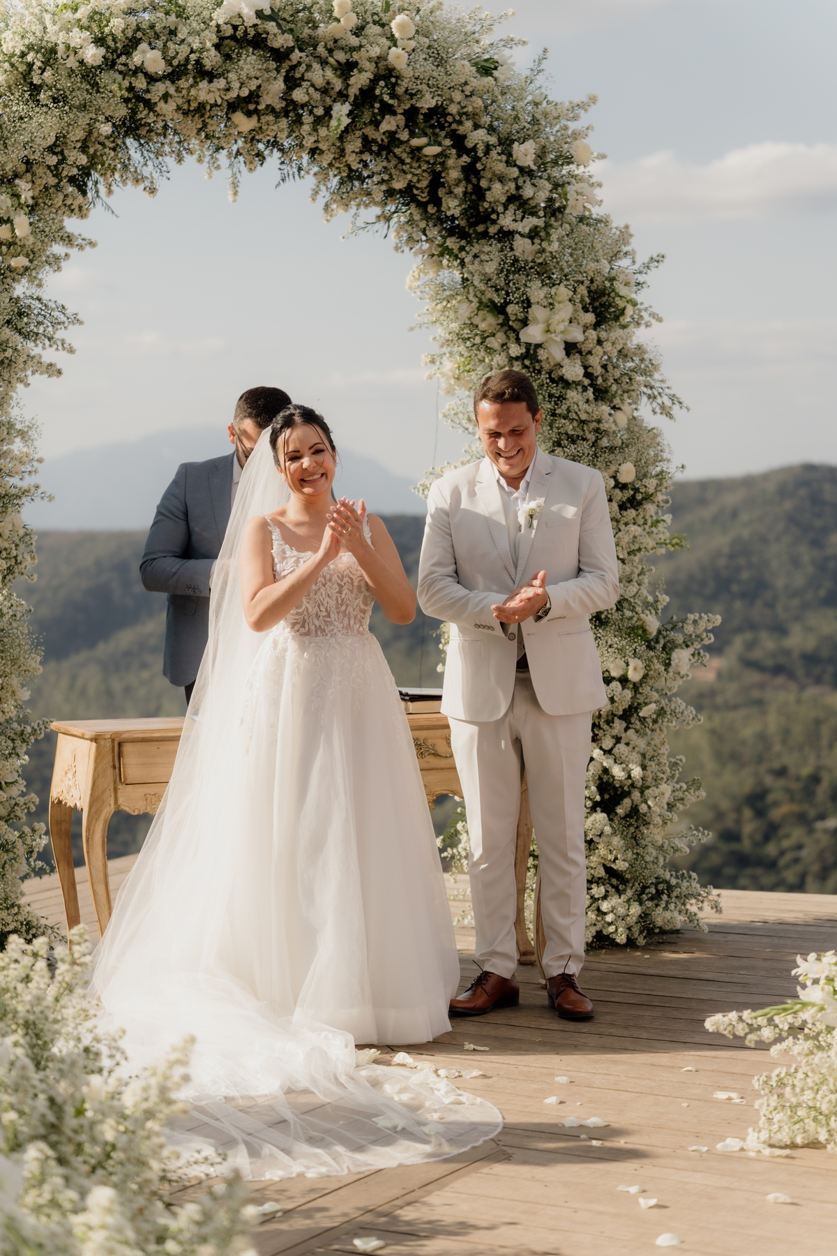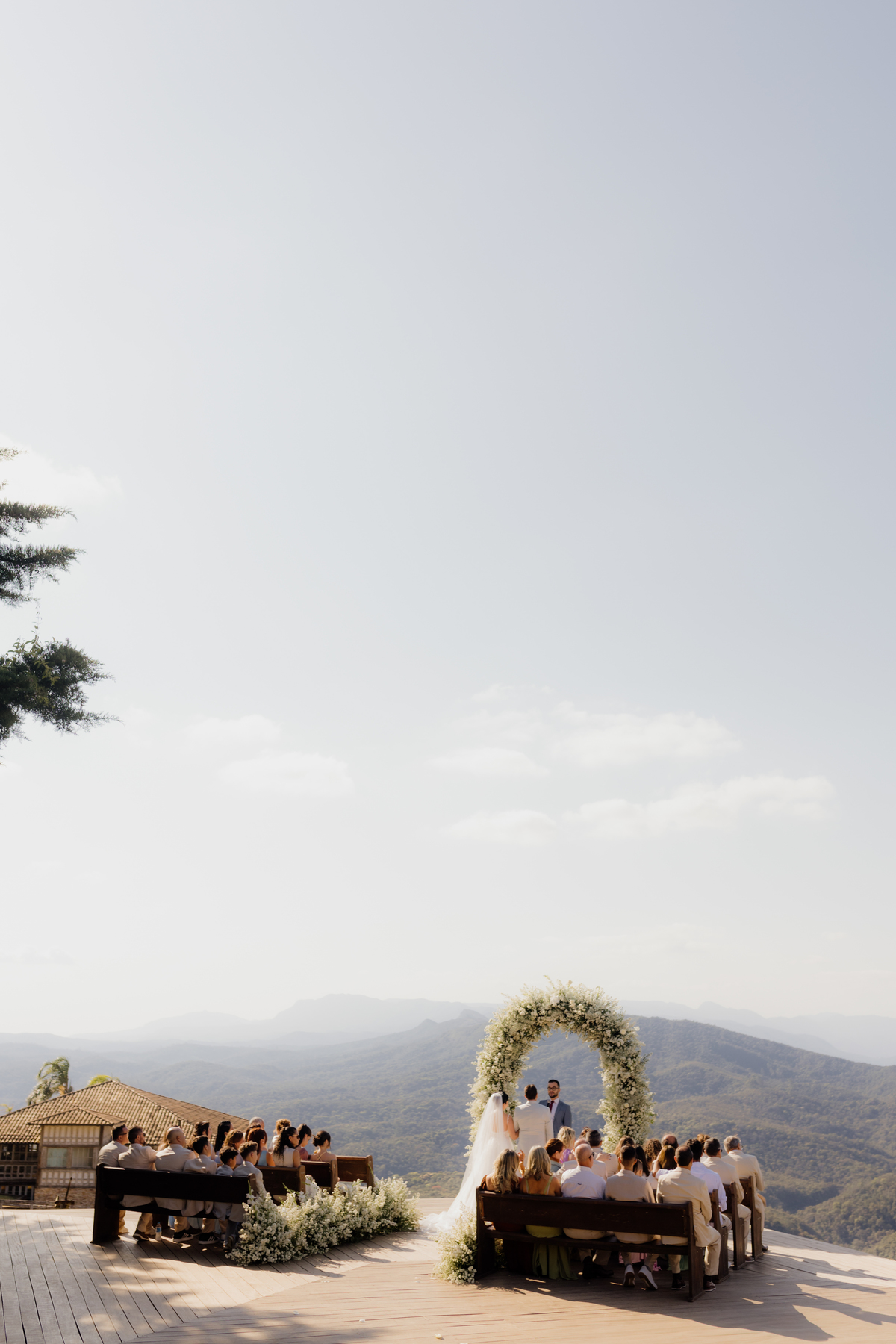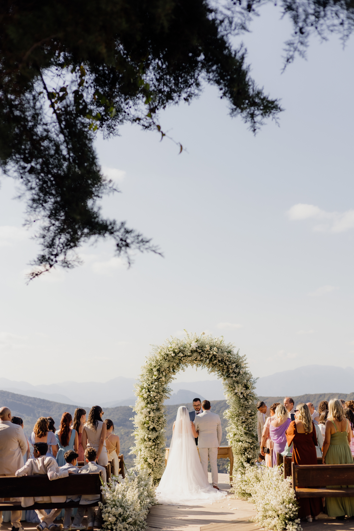 Na Vila Relicário, o dia estava especialmente bonito, com um pôr do sol que preenchia tudo com uma luz suave. Sem excessos, sem pressa, o casamento aconteceu de forma leve, no olhar tranquilo, nas mãos que se encontravam, na certeza silenciosa de quem escolheu estar ali. Mais do que um cenário incrível, foi um dia sobre presença. Sobre dois caminhos que, com calma, decidiram seguir juntos.